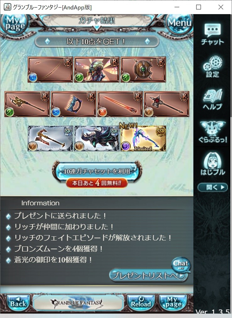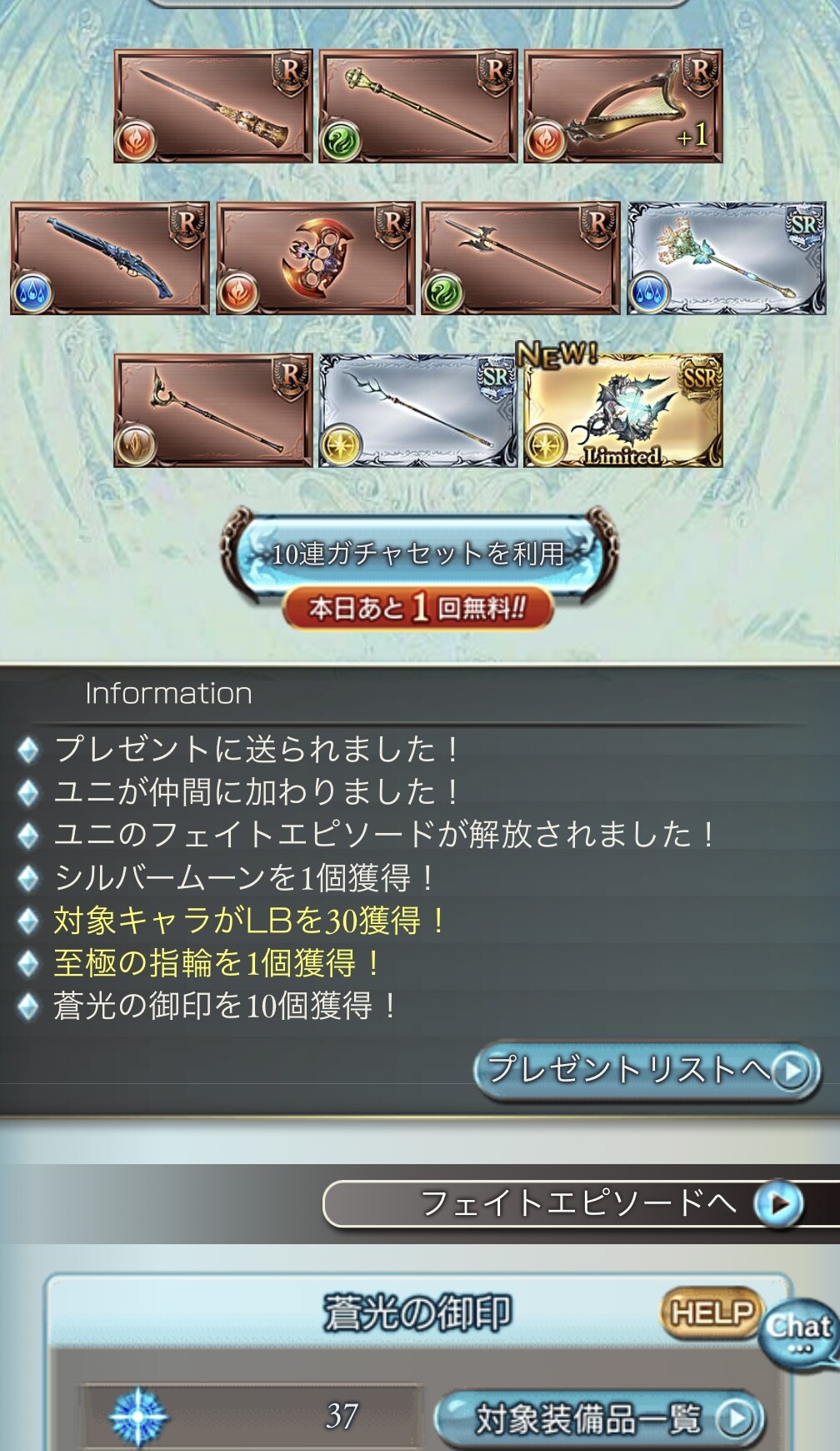 10連だけど明日にはガチャピンモードなので狙い通りではある