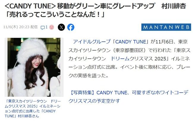 【元HKT48】CANDY TUNE・村川緋杏「移動がグリーン車になった。売れるとはこういうことなんだ」 続きを読む 続きを見る
