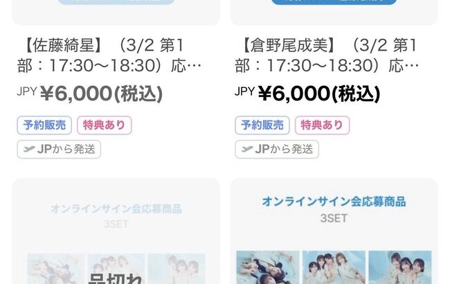 【朗報】AKB48・Weverse LIVEオンラインサイン会、佐藤綺星、伊藤百花、小栗有以が即完売してしまう!!! 続きを読む 続きを見る