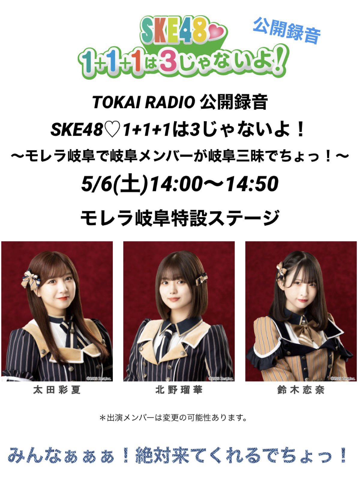 【SKE48】「1+1+1は3じゃないよ!」 公開録音イベント決定!!!
