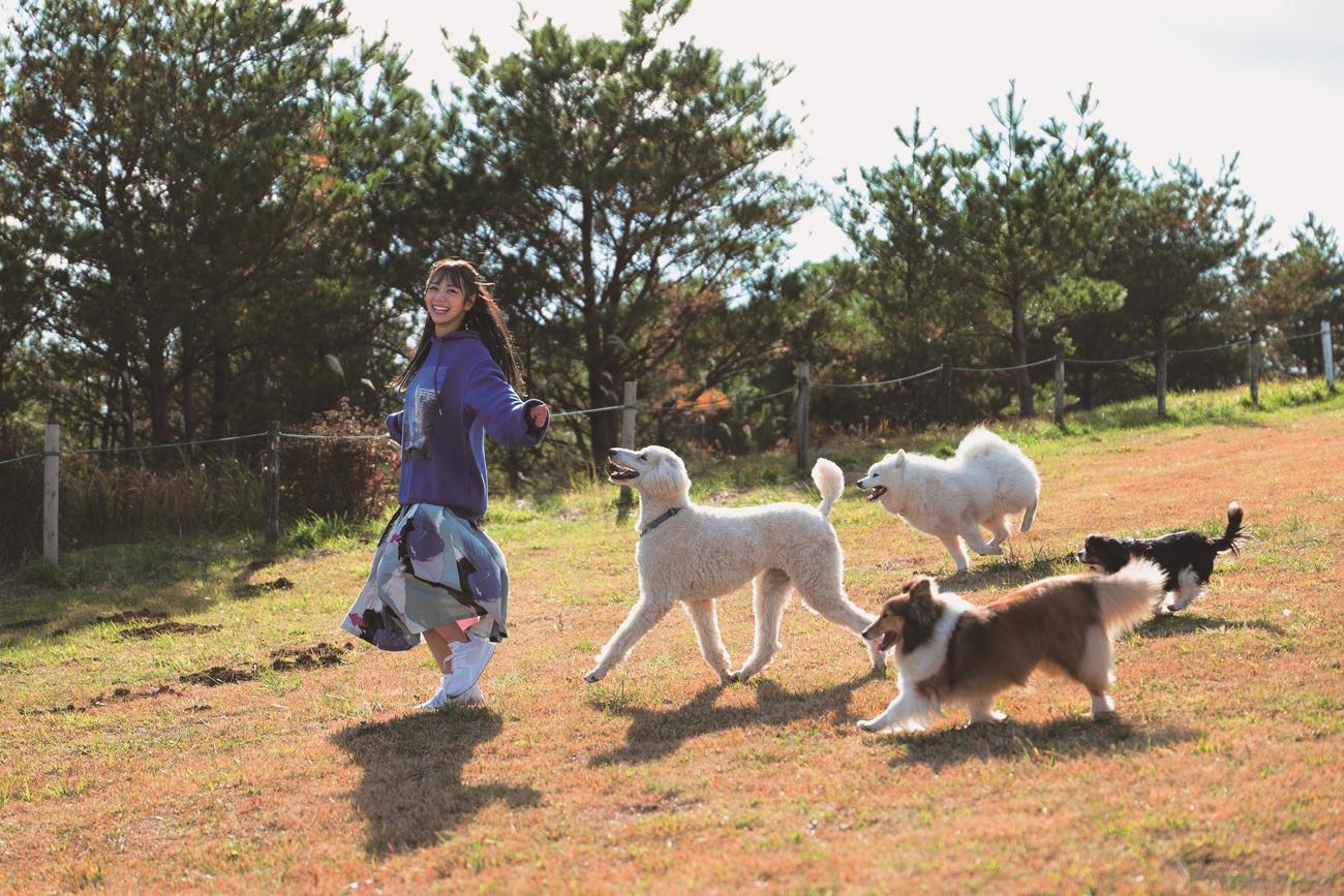 鹿児島では海や山などの大自然をバックに無邪気な笑顔を見せる姿、那須ではたくさんの犬に囲まれたシーンなどを収めた。鹿児島から飛行機で向かった種子島では天気にも恵まれ、宇宙センターのロケット打ち上げをバックにしたレアショットも撮影したという。水着やランジェリーのショットも収録される。
