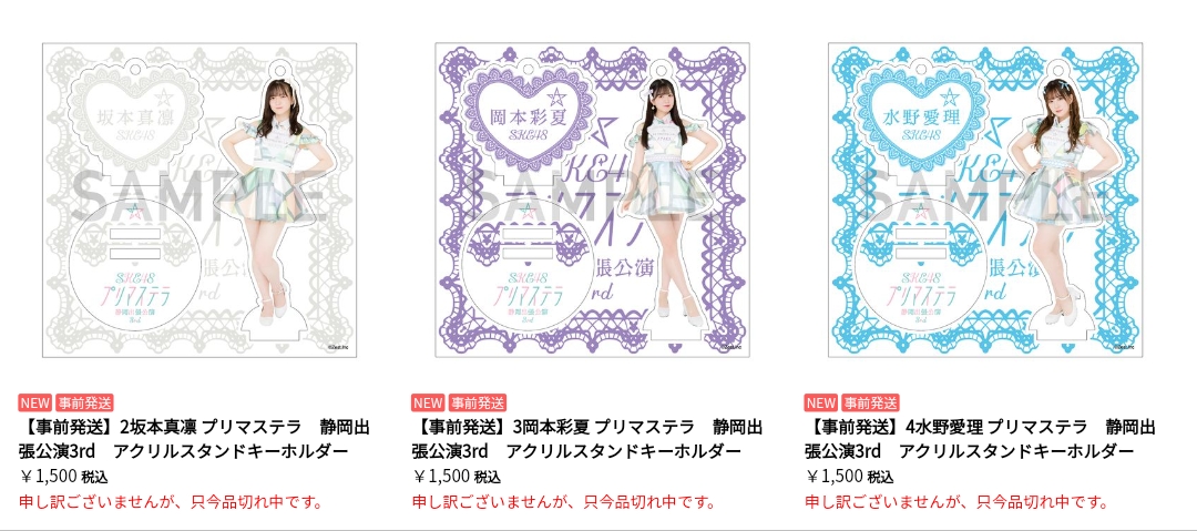 【SKE48】プリマステラのグッズオフィシャルショップで注文しようと思ったら、アクスタ全完売って....