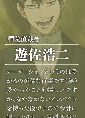 【呪術廻戦】遊佐浩二さんのコメント https://ift.tt/EMbTwc5 名前:ねいろ速報 禪院家 26 代目当主・禪院直毘人の息子で 真希・真依の従兄弟である禪院直哉を 遊佐浩二さんが演じます!! 名前:ねいろ速報 1 知ってた 名前:ねいろ速報 2 悪役を演じるのはめちゃくちゃ楽しい 続きを読む