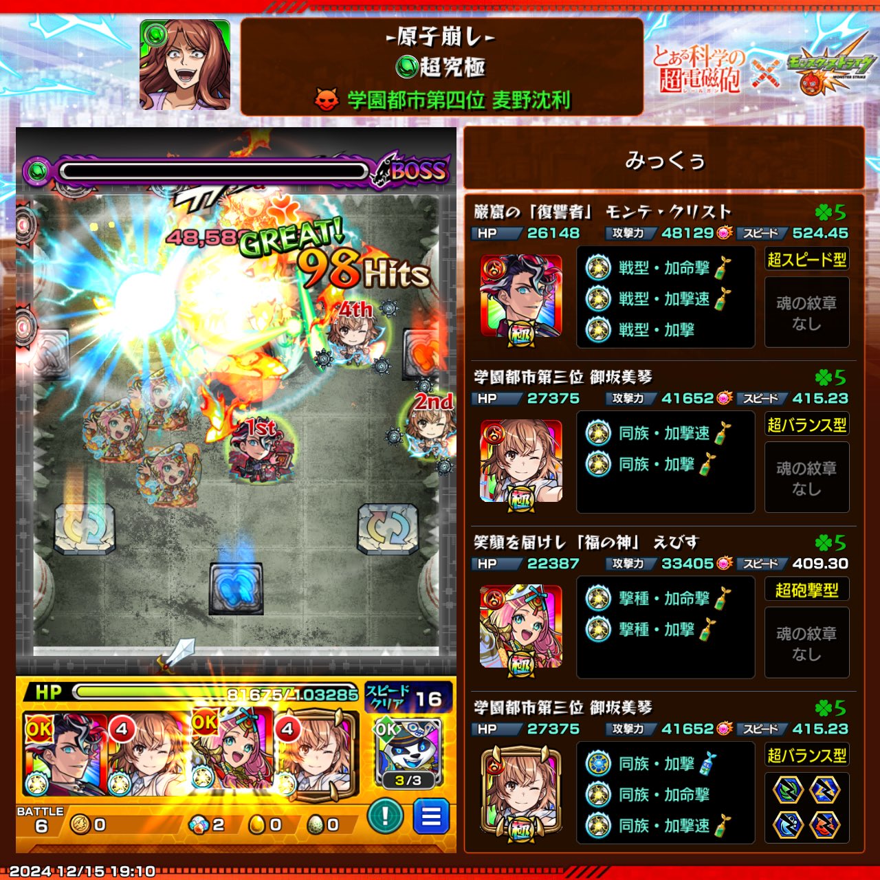 【モンスト】コラボ超究極の麦野沈利さん、歴代超究極で最簡単説wwwwww