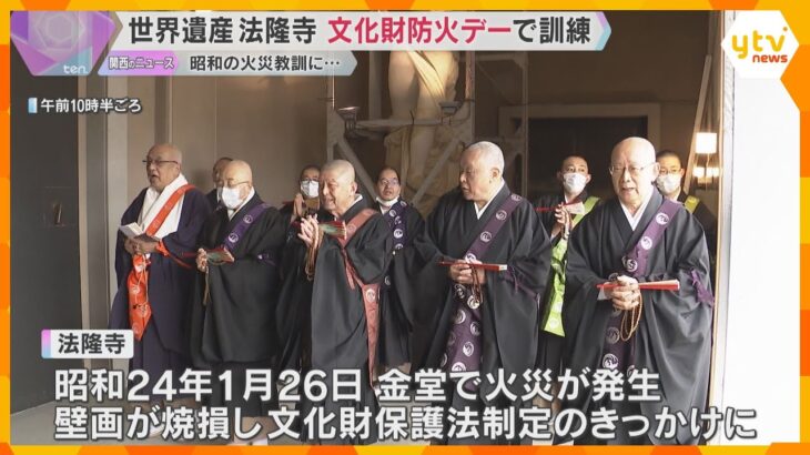 77年前の火災を教訓に…世界遺産・法隆寺で訓練 自動放水装置の点検や一斉放水も 文化財防火デー 26日は文化財防火デーです。奈良県斑鳩町にある世界遺産・法隆寺では、77年前の火災を教訓にした訓練が行われました。 法隆寺では、昭和24年1月26日、世界最古の木造建築物である金堂で火災が起き、「東洋仏教美術の至宝」といわれる国宝の壁画が焼損、文化財保護法が制定されるきっかけになりました。 26日 […]