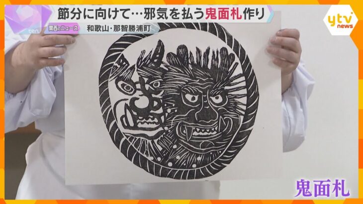 “邪気を払う”木版画の「鬼面札」作り 節分までに約2500枚用意し参拝客らに授与 熊野那智大社 2月の節分を前に和歌山県那智勝浦町の熊野那智大社では、邪気を払うとされる「鬼面札」作りが行われています。 黒々とした墨で刷られた鬼の顔。鬼面札は、しめ縄の輪の中に青鬼と赤鬼が封じ込められた様子を表した木版画で、玄関などに貼ると邪気を払うとされています。 那智の滝から汲み上げた水ですった墨を巫女が版 […]