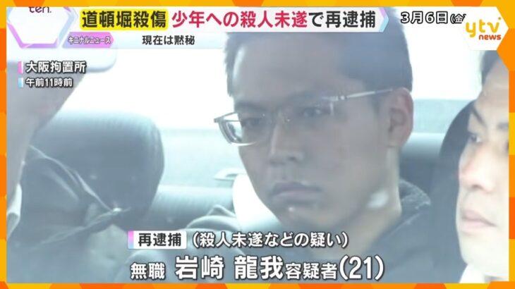 道頓堀少年3人殺傷事件で21歳男を再逮捕 『グリ下』周辺で高校生らに悩み相談窓口を紹介 大阪府警 大阪・ミナミの道頓堀で、17歳の少年3人が殺傷された事件。逮捕された男が、2人の少年に対する殺人未遂などの疑いで再逮捕されました。 再逮捕されたのは、無職の岩崎龍我容疑者(21)で、先月(2月)14日の深夜、大阪市中央区の商業ビルで、17歳の少年2人を折り畳みナイフで刺して殺害しようとしたなどの疑 […]