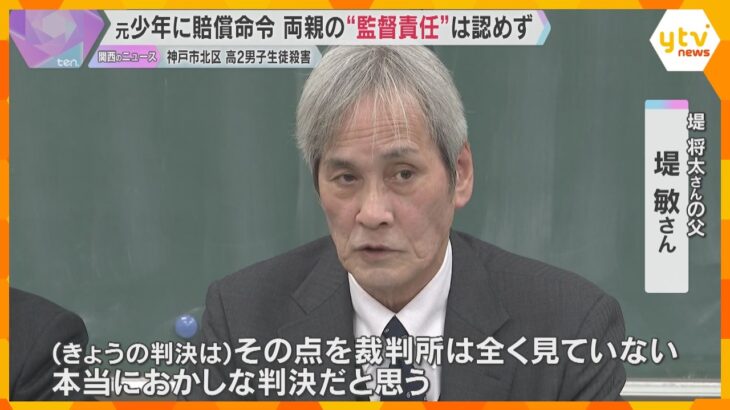 「本当におかしな判決」高校生殺害の元少年に約9600万円の賠償命令も両親の“監督責任”は認めず 16年前、神戸市北区で高校2年生の男子生徒が殺害され、遺族が被告の元少年と両親に損害賠償を求めた裁判で、神戸地裁はきょう(19日)、元少年に賠償を命じた一方、両親の「監督責任」については認定しませんでした。 2010年、神戸市北区で高校2年の堤将太さん(当時16)が殺害された事件では、被告の元少年 […]