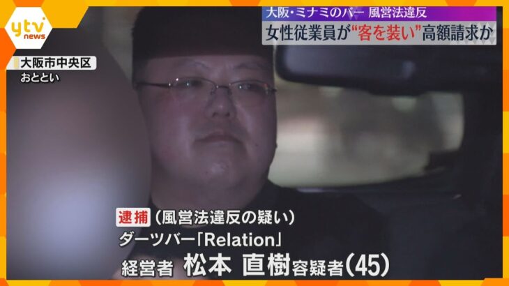 ミナミのバー摘発 ぼったくり被害相談続出 大阪・ミナミのバーで、無許可で女性従業員に客を接待させたとして、経営者の男が逮捕されました。このバーでは、法外な料金請求、いわゆる「ぼったくり」被害を訴える警察への相談が30件以上あるということです。 逮捕されたのは、大阪市中央区のダーツバー「Relation(ルラシオン)」の経営者、松本直樹容疑者(45)で、去年11月と12月、風俗営業の許可なく女性 […]