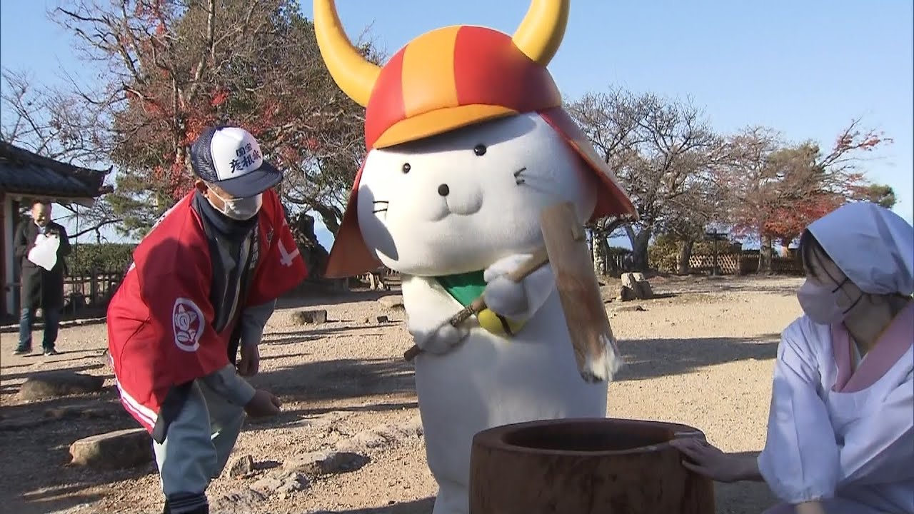 12月12日、滋賀県の国宝・彦根城で、もちつきが行われ、彦根市の人気キャラクター「ひこにゃん」も杵を振るいました。地元のもち米40kgが天守などに飾る鏡餅になります。つきたてのおもちの一部は、きなこもちにして観光客に振る舞われました。