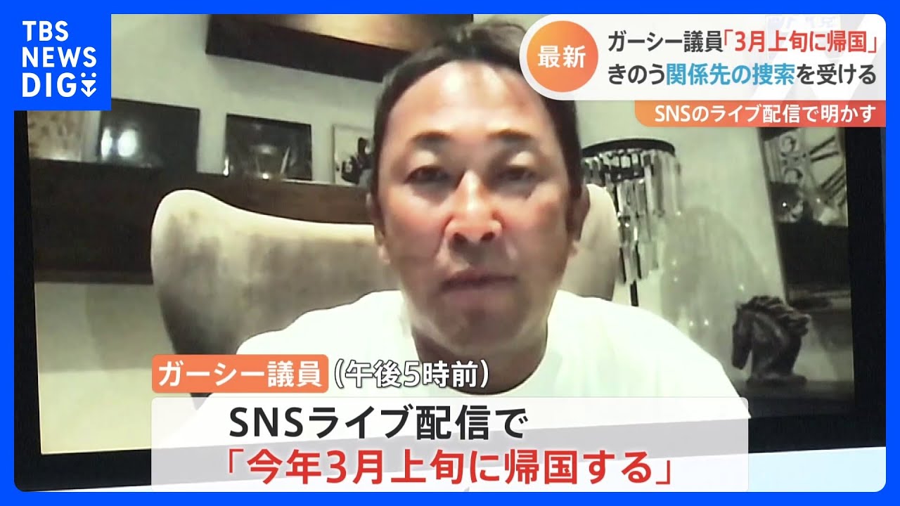 「3月上旬に帰国する、事情聴取にも応じる」ガーシー議員がライブ配信 常習的脅迫や威力業務妨害などで捜査|TBS NEWS DIG