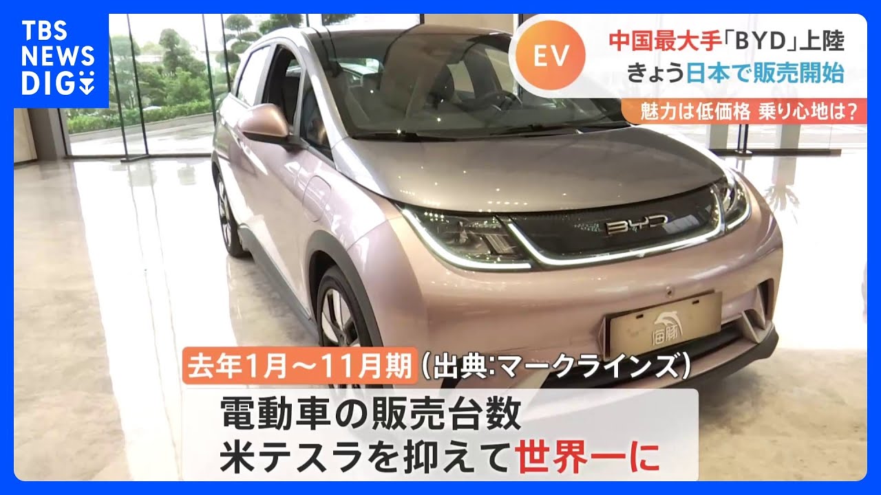 EV車の販売台数は“テスラ超え”? 中国「BYD」が日本での販売開始|TBS NEWS DIG