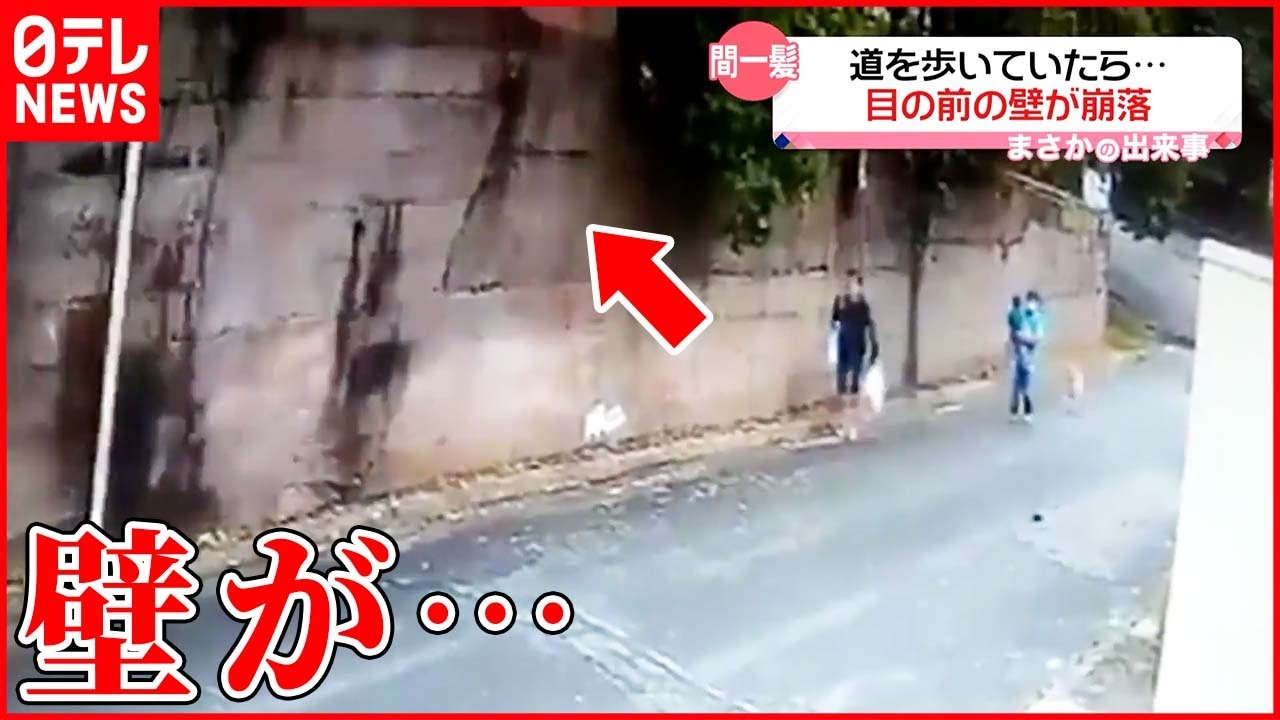 【まさか】道を歩いていたら…目の前の壁崩落 ブラジル