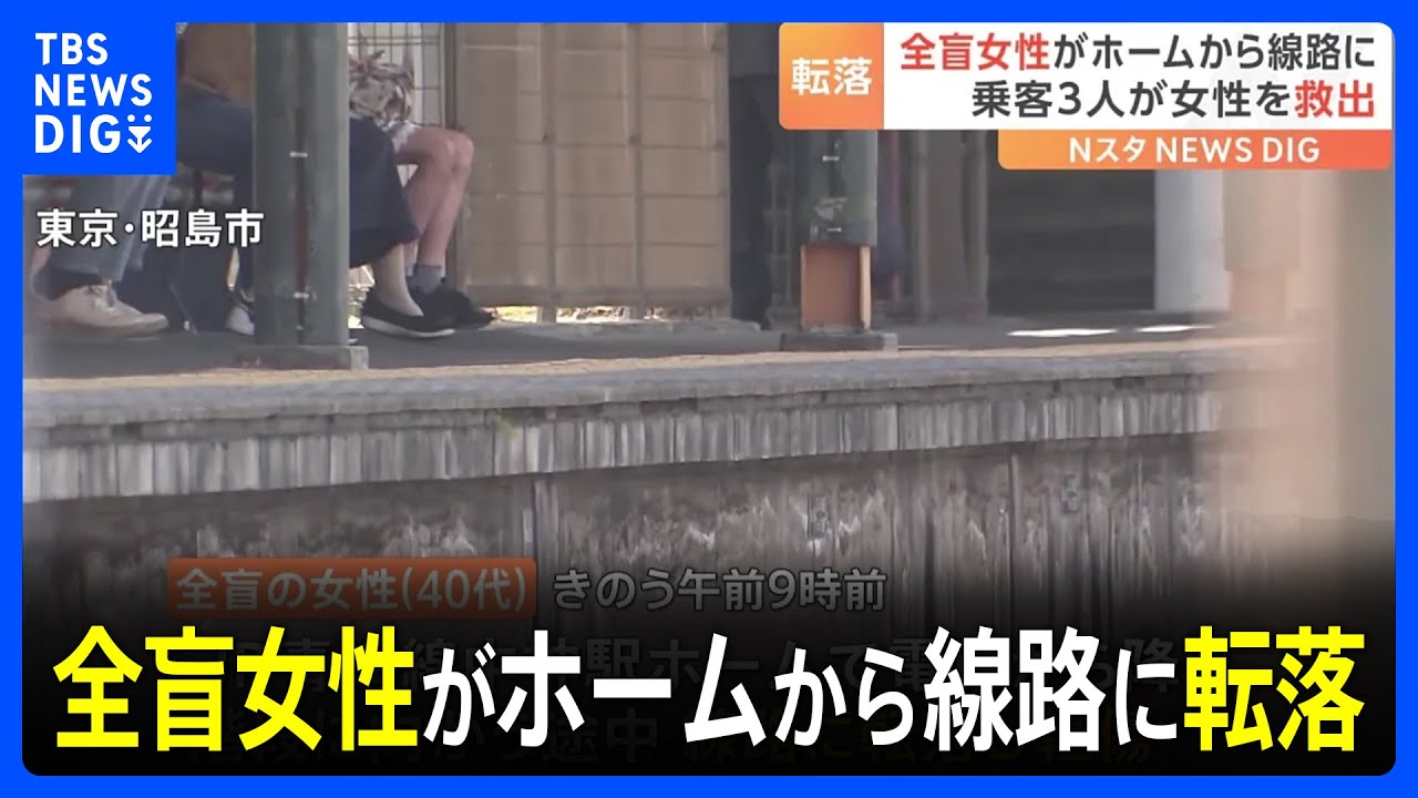 全盲女性がホームから線路に転落し軽傷… ホームドアなし 3人が引き上げ 東京・昭島市 JR中神駅|TBS NEWS DIG