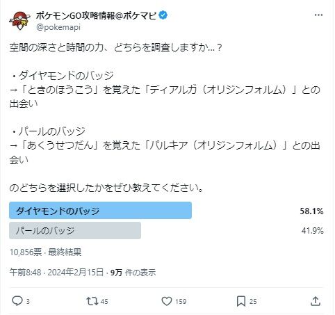 ポケマピがアンケートやっているけど6:4でディアルガ優勢だな