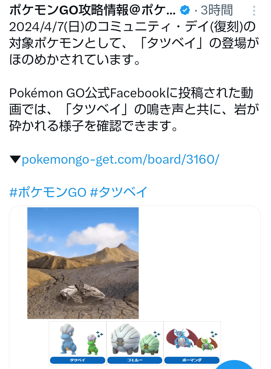 【ポケモンGO】4月に「タツベイの復刻コミュデイ」の噂