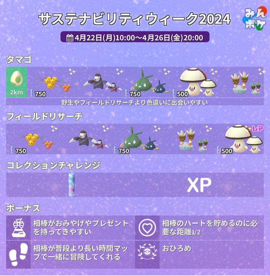 【ポケモンGO】明日から「サステナビリティウィーク2024」【4月22~26】