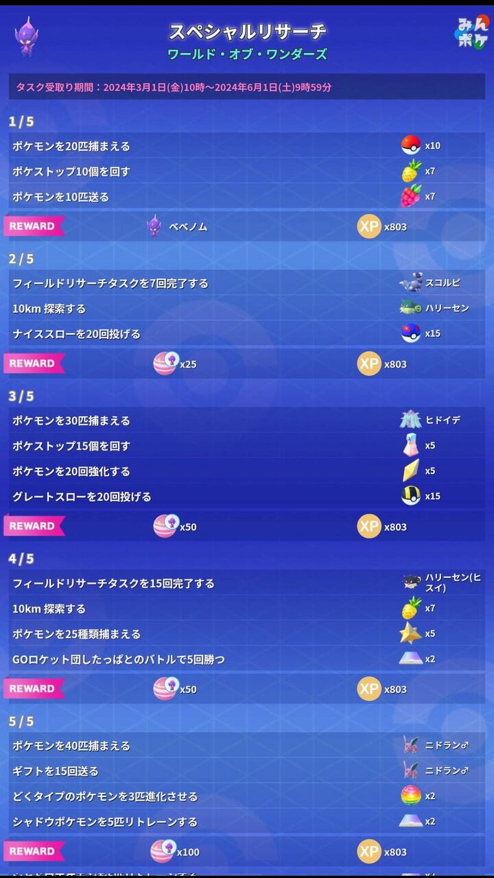 【ポケモンGO】タイムチャレンジ・SPリサーチ内容一覧【ワールド・オブ・ワンダーズ】