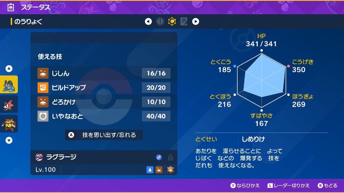 アシボ2からの適応力地面テラバが強い。S振りで先に防御を上げられる、どろかけで命中下げられる。