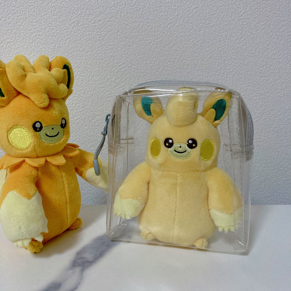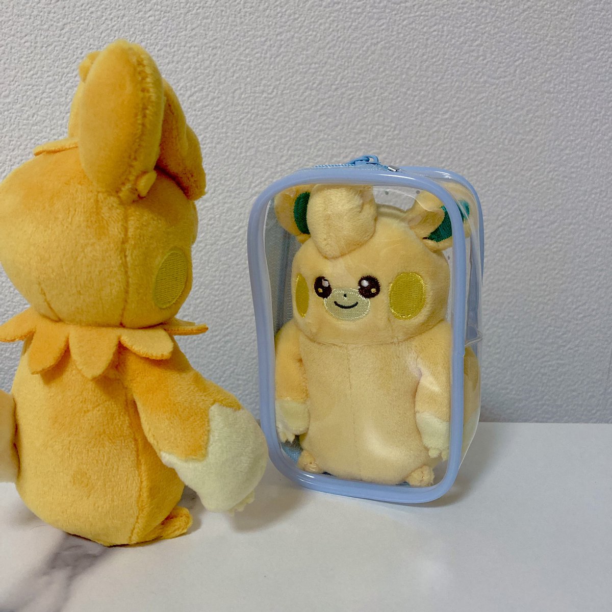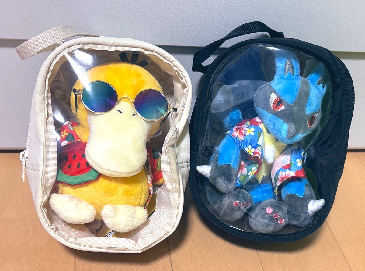 後無印良品の吊るせるコレクションポーチ自分も買ってきたんだけどリザとケンキのぬいもギチギチ気味だけどなんとか入る大きさだったよ