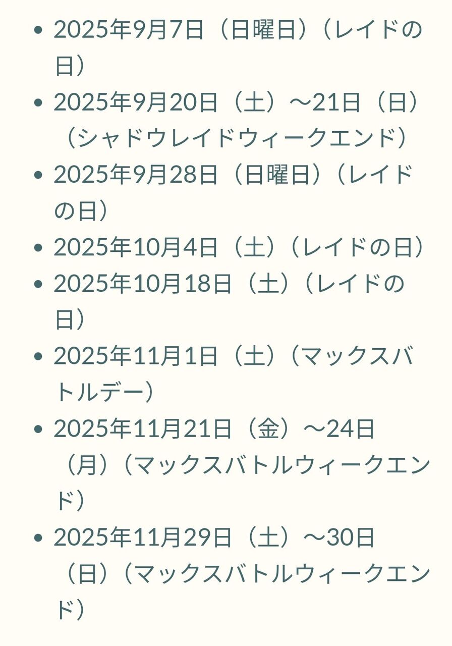 2025年9月7日(レイド・デイ)