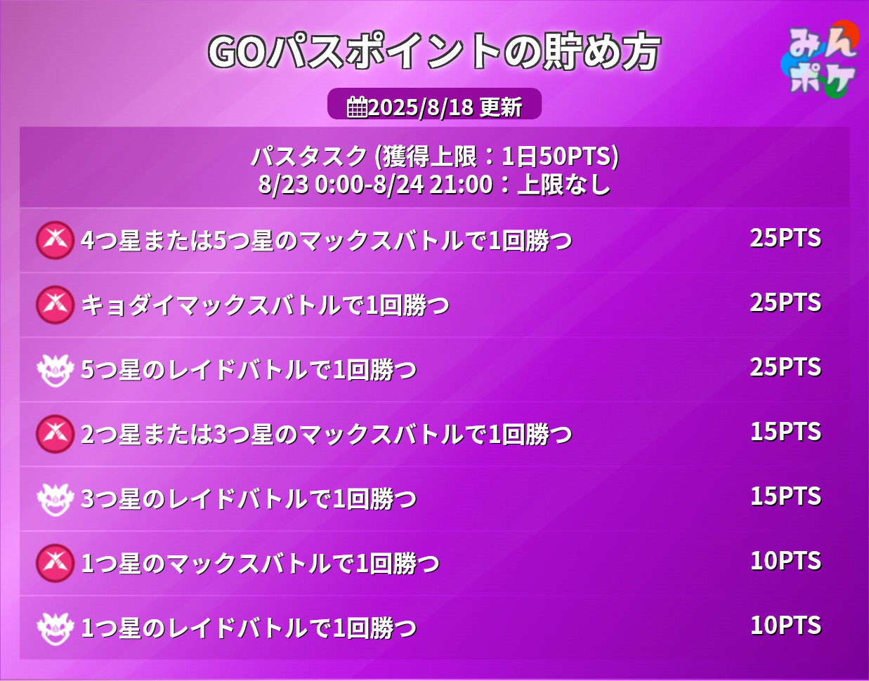 1日で星2か星3のマックスバトルを2回と5卵レイドを1回で50ptは超えるけど、仕事終わりにうまくやれるかどうかやね