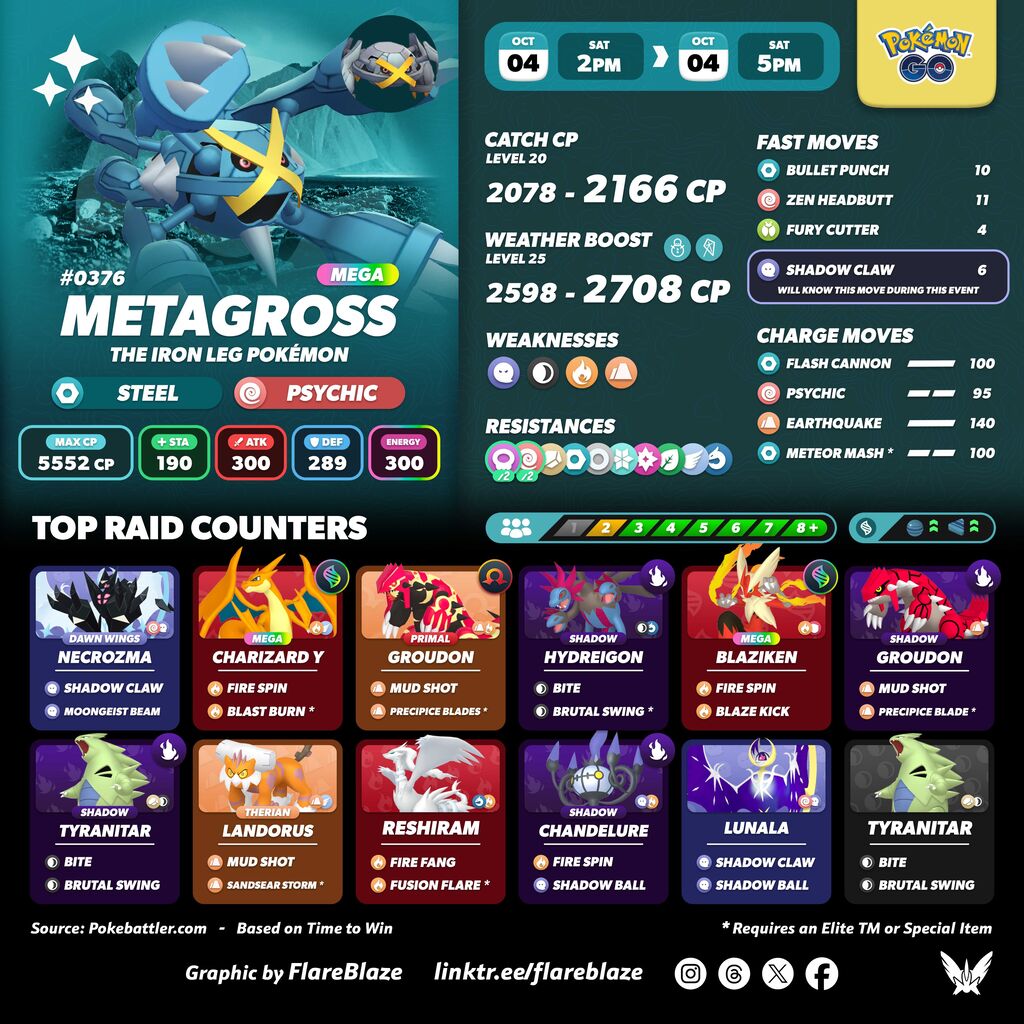【ポケモンGO】明日は「メガメタグロス:レイドデイ」【10/4(土)14:00~17:00】