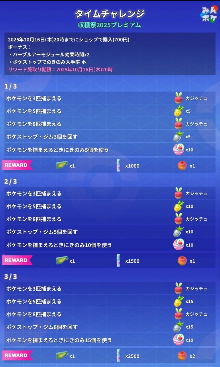 【ポケモンGO】収穫祭2025、タイムチャレンジ、リサーチタスク内容一覧