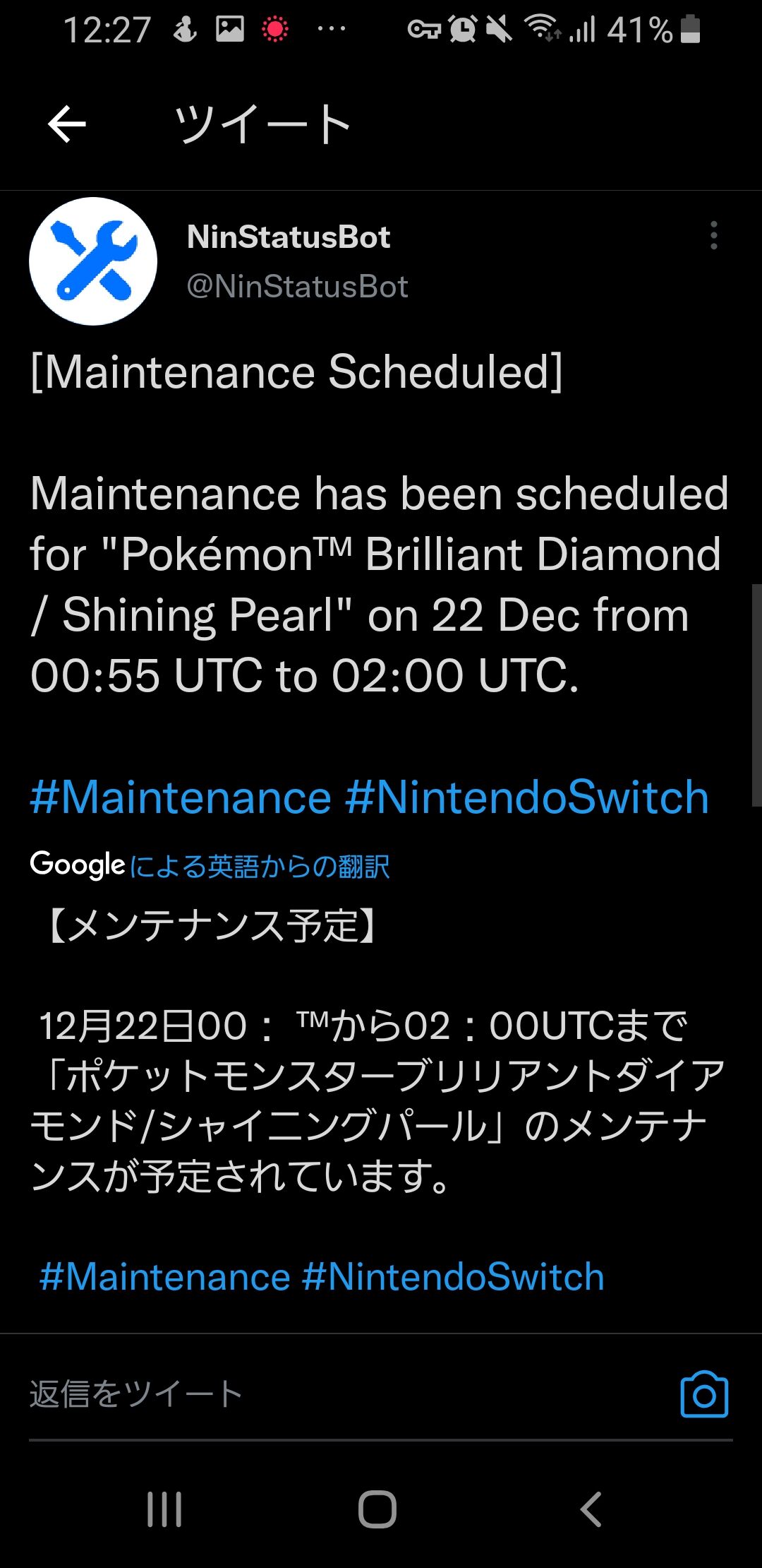 今夜未明ポケモンBDSPのメンテ襲来か!?「v1.1.2」の空を飛ぶメニューバグ潰しか?