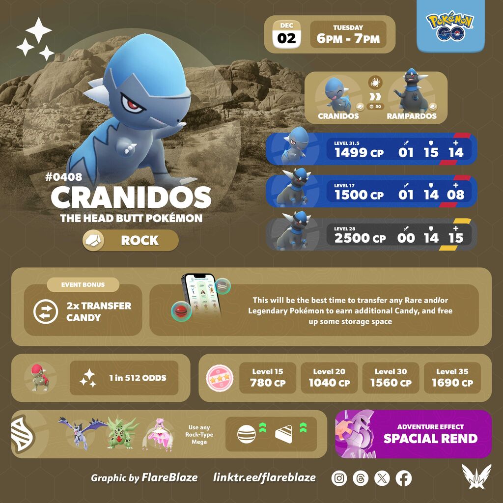 次回のスポットライトアワーは、ズガイドスが登場し、2倍のポケモン送りボーナスがもらえます