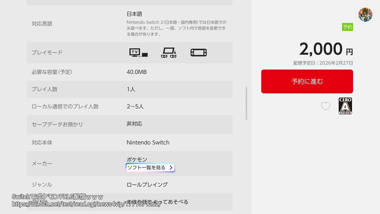 SwitchでポケモンFRLG2000円