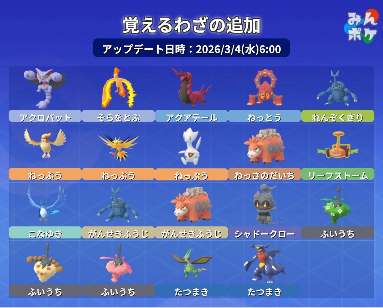 「グライオン」が、スペシャルアタック「アクロバット」を覚えられるようになります。