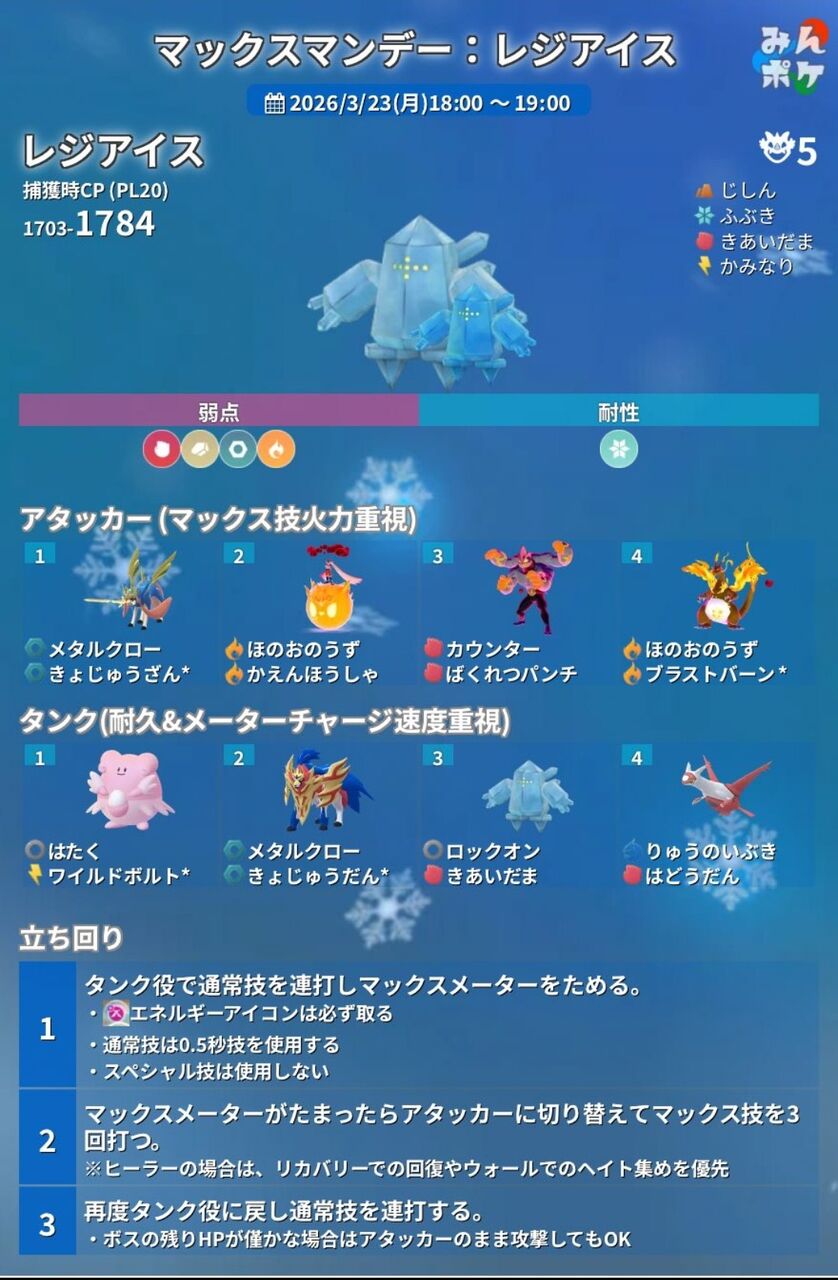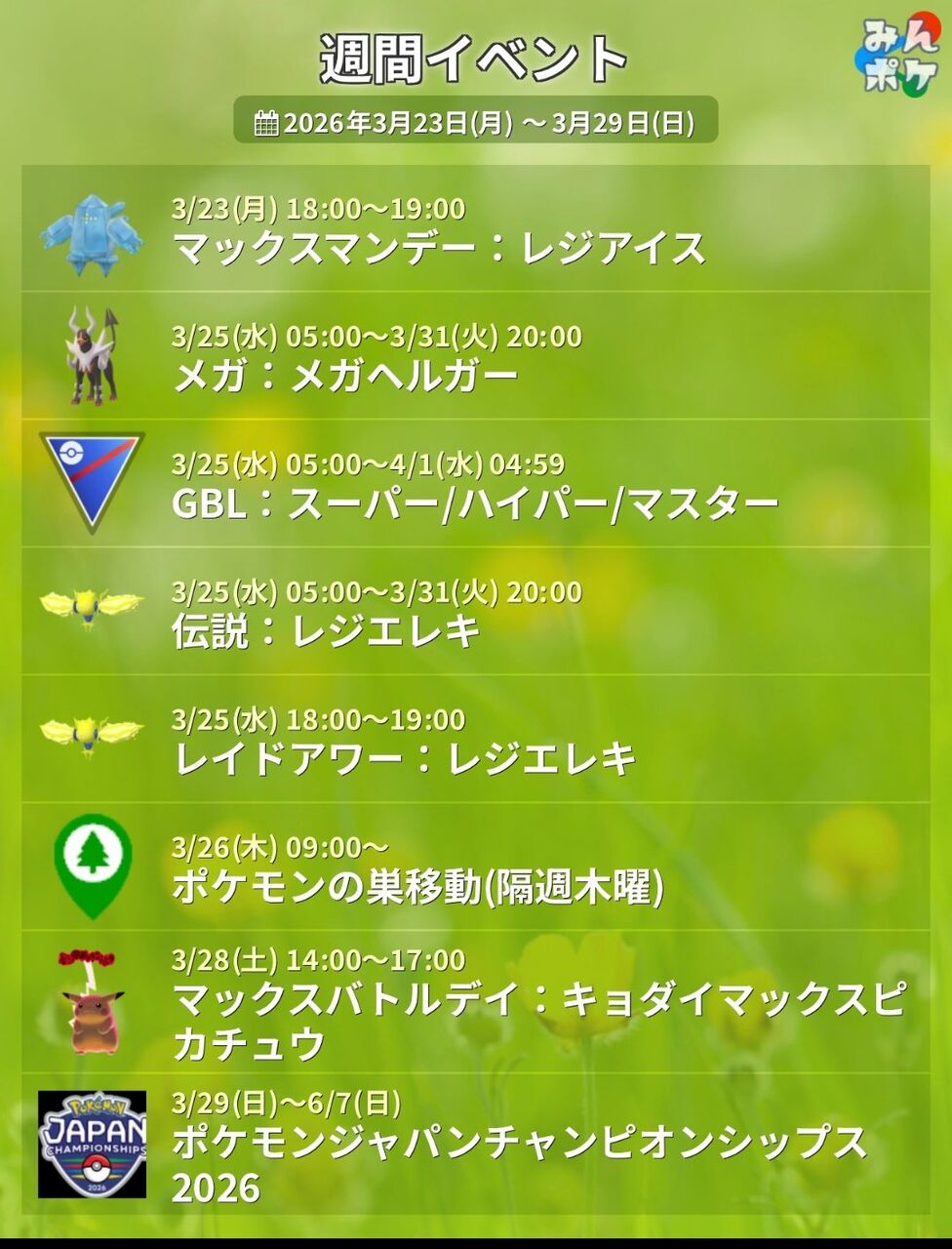 【ポケモンGO】ダイマレジアイス、伝説レイドにレジエレキ今週の予定【20260323~】