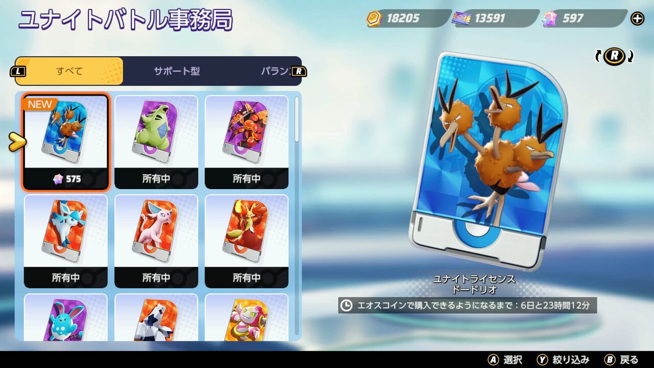 【ポケモンUNITE】ドードリオ、1週間コインで購入不可!課金でのみ購入可能!