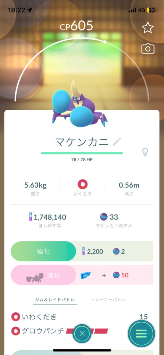 今日から格闘イベント。新実装のマケンカニを早速捕まえた。ケケンカニへの進化はアイスルアーがいるのか。だけど氷格闘だからこのゲームでは強そう。