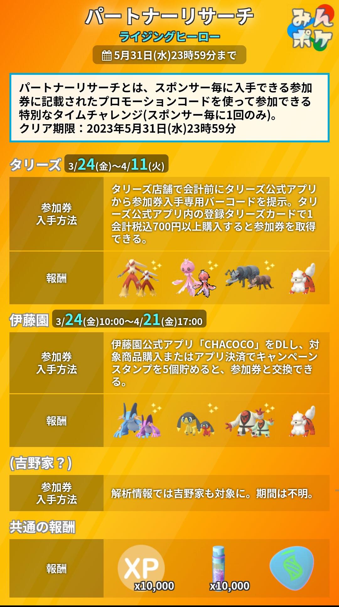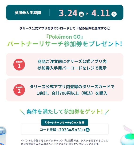 【ポケモンGO】パートナーリサーチ「タリーズ」参加券の貰い方