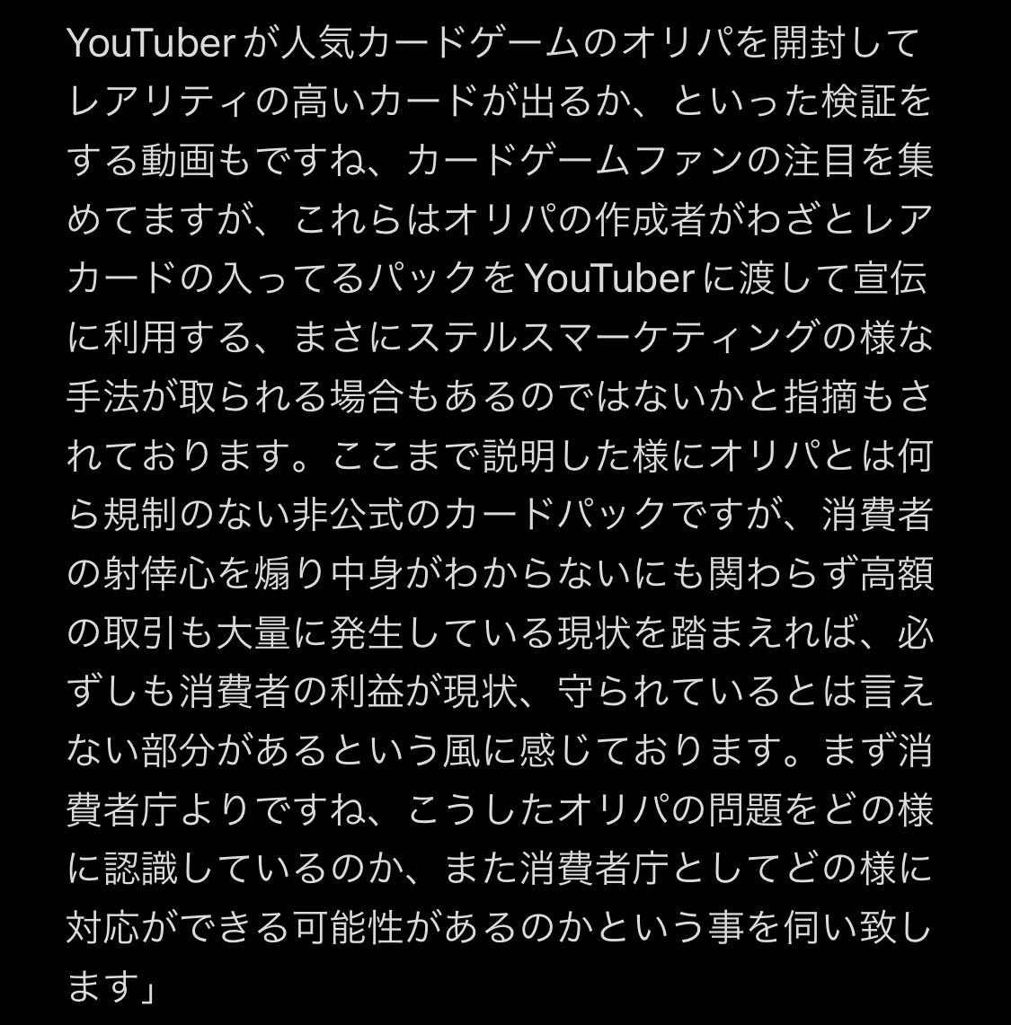 トレカの高騰とオリパについて(景品表示法)」