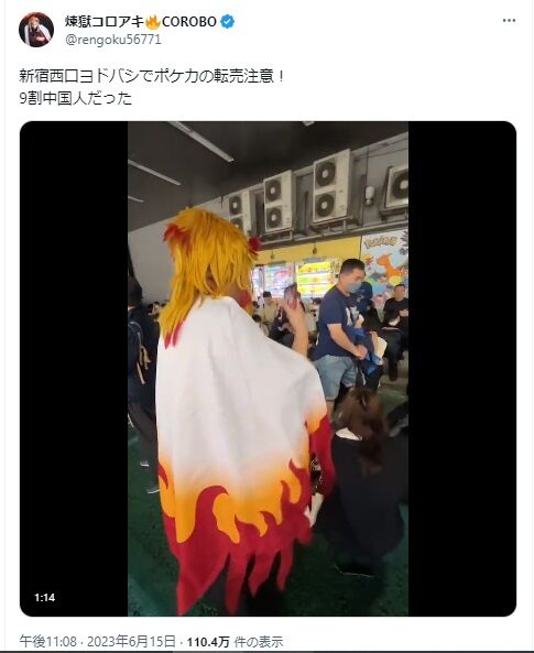 9割中国人だった pic.twitter.com/NmOgRWTVRj— 煉獄コロアキ🔥COROBO (@rengoku56771) June 15, 2023