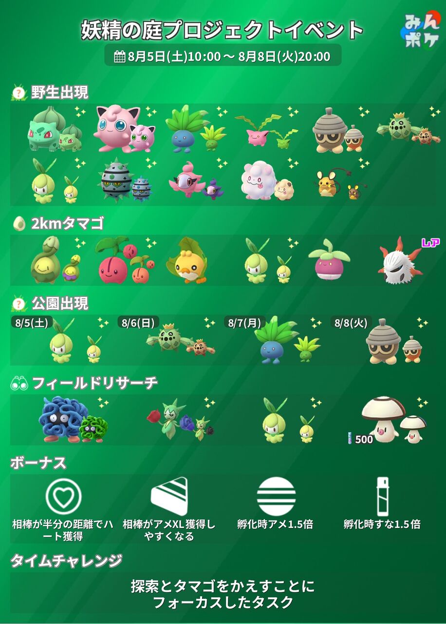 【ポケモンGO】明日から「妖精の庭プロジェクト」イベントが開催!色チュリネが初登場!【8月5~8日】