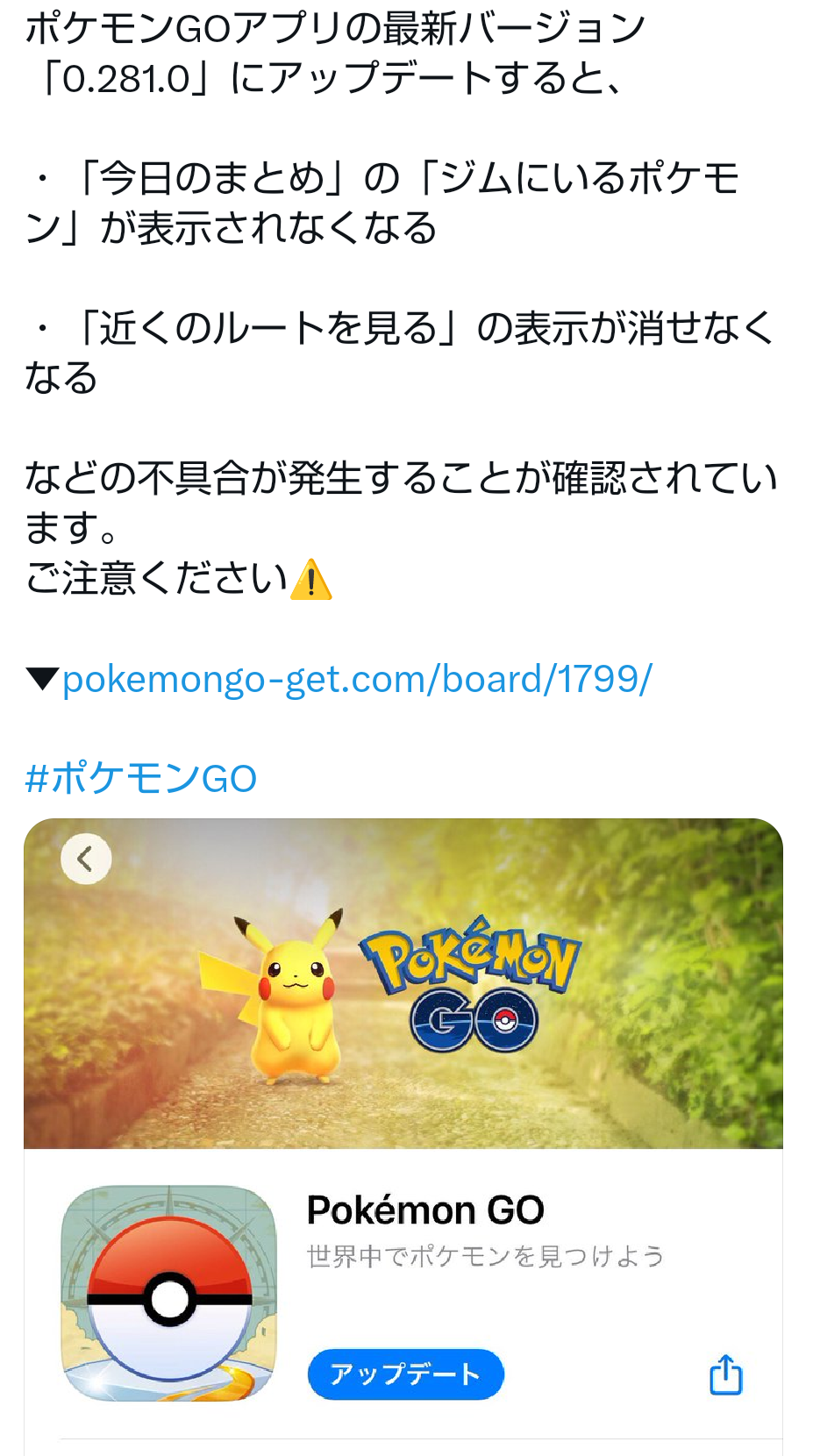 【ポケモンGO】アプデ更新到来!「今日のまとめのジムにいるポケモンが表示されない」「近くのルートを見るが消せなくなる」などが実装!!