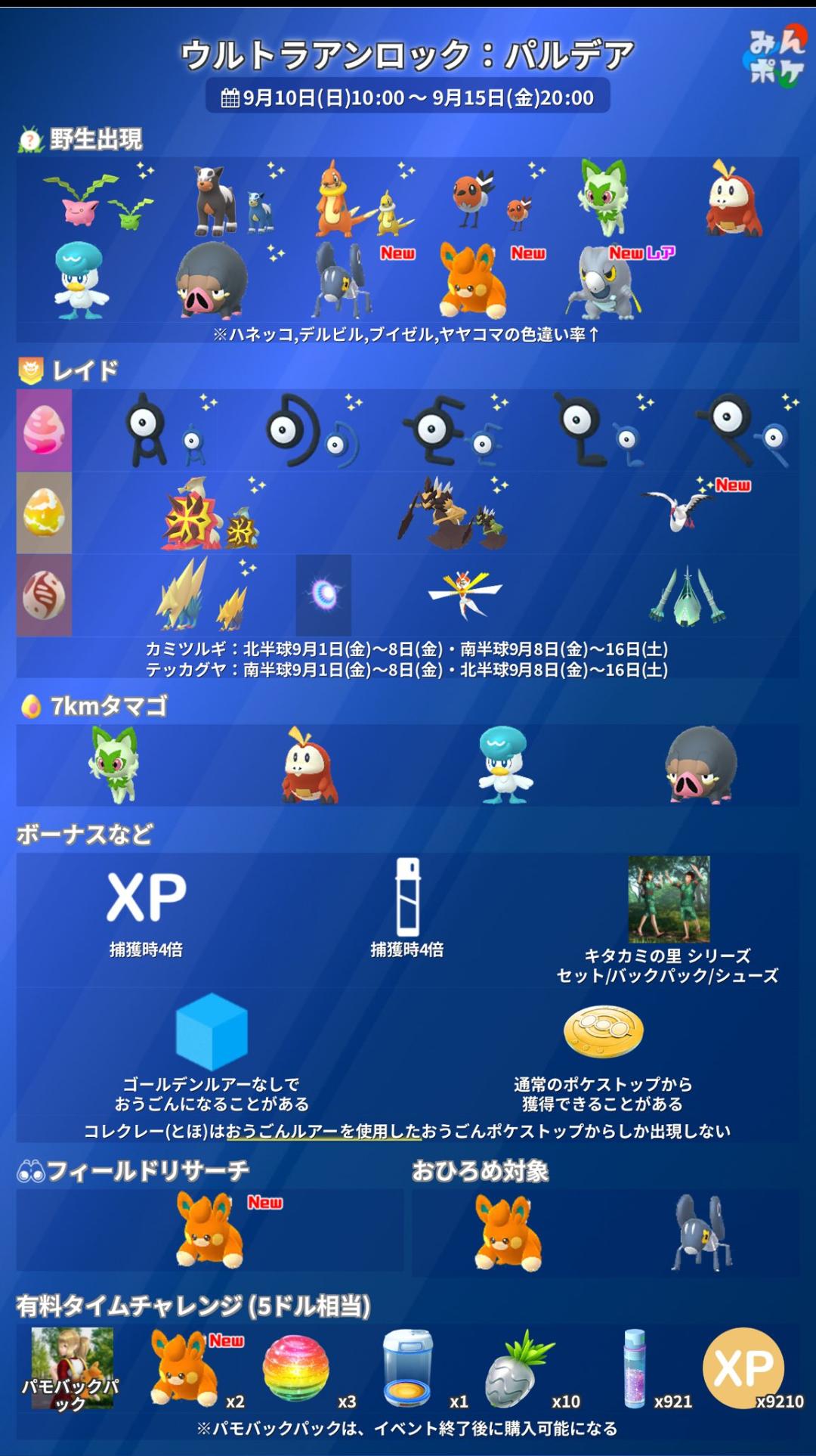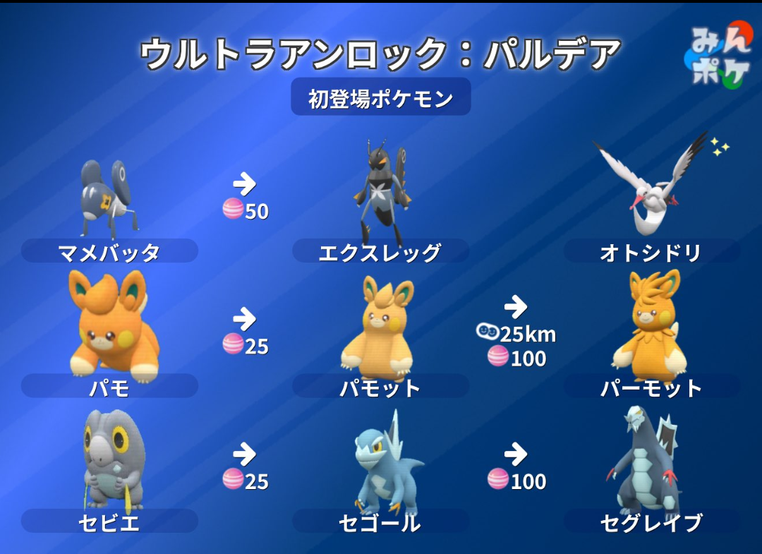 【ポケモンGO】明日からマメバッタ・オトシドリ・パモ・セビエ解禁!「ウルトラアンロック:パルデア」XPと砂4倍は継続!【9月10~15日】