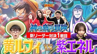 【公式】ブースターパック『神の島の冒険【OP-15】』新リーダー対決① 黄ルフィVS紫エネル【ワンピカード情報局】(ONE PIECEカードゲーム)