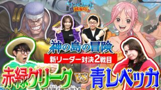 【公式】ブースターパック『神の島の冒険【OP-15】』新リーダー対決② 赤緑クリークVS青レベッカ【ワンピカード情報局】(ONE PIECEカードゲーム)