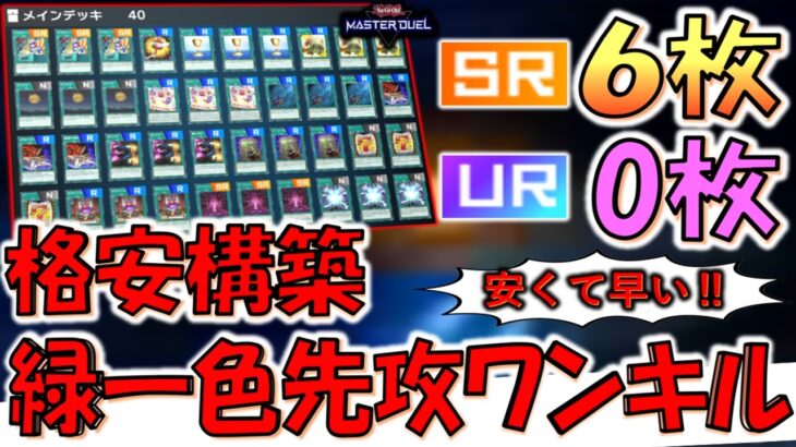 【UR不要で組みやすい】緑一色構築に興味ある方必見! SR6枚UR0枚で組める格安構築緑一色先攻ワンキル【遊戯王マスターデュエル】【Yu-Gi-Oh! Master Duel FTK】